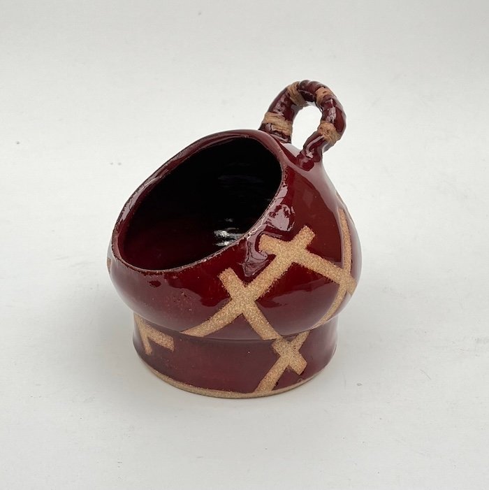 Colours available: dark red, indigo and blue rutile. These items are individually thrown and carved so variations in shape and size will occur.