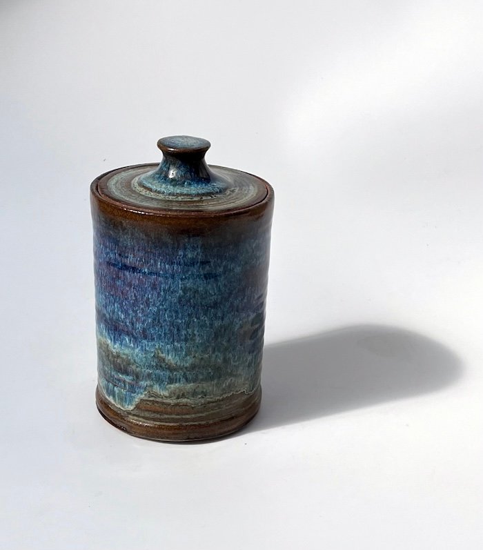 Thrown and textured stoneware jars in various sizes. Not airtight.