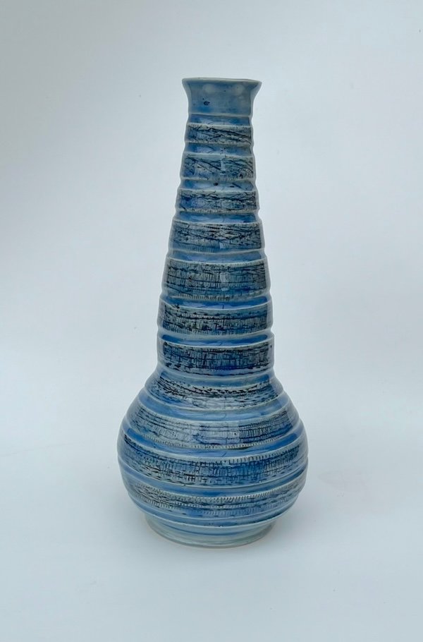 Thrown and carved stoneware vase.